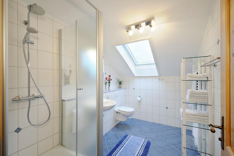 - 1 Badezimmer mit Regendusche, WC, Schminkspiegel, Handtuchwärmer
