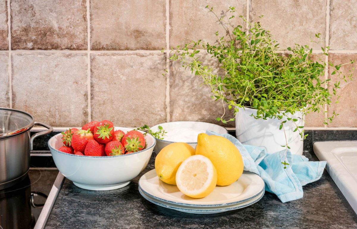 - komplett ausgestattete Küche mit E-Herd, Backofen, Kühlschrank mit Gefrierfach, Mikrowelle, Geschirrspüler, Kaffeemaschine, Wasserkocher, Eierkocher, Handrührgerät, Stabmixer und Toaster