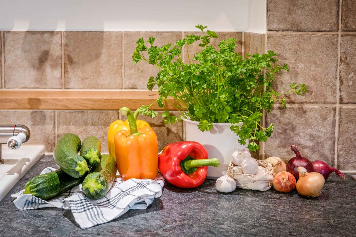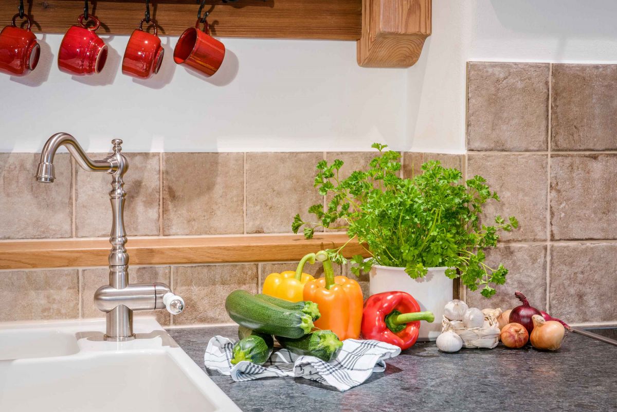 - komplett ausgestattete Küche mit E-Herd, Backofen, Kühlschrank mit Gefrierfach, Mikrowelle, Geschirrspüler, Kaffeemaschine, Wasserkocher, Eierkocher, Handrührgerät, Stabmixer und Toaster