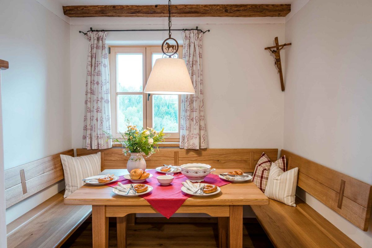 - Essbereich mit Tisch, Eckbank und Vorbank