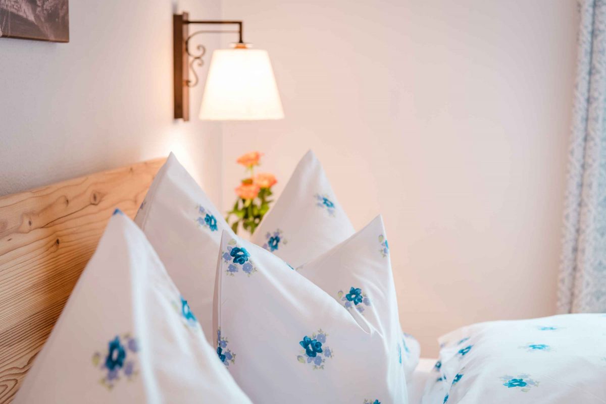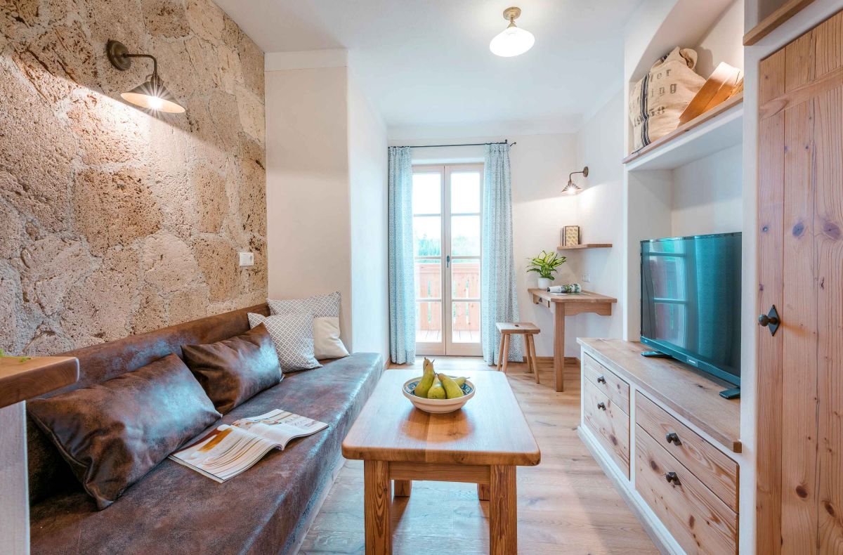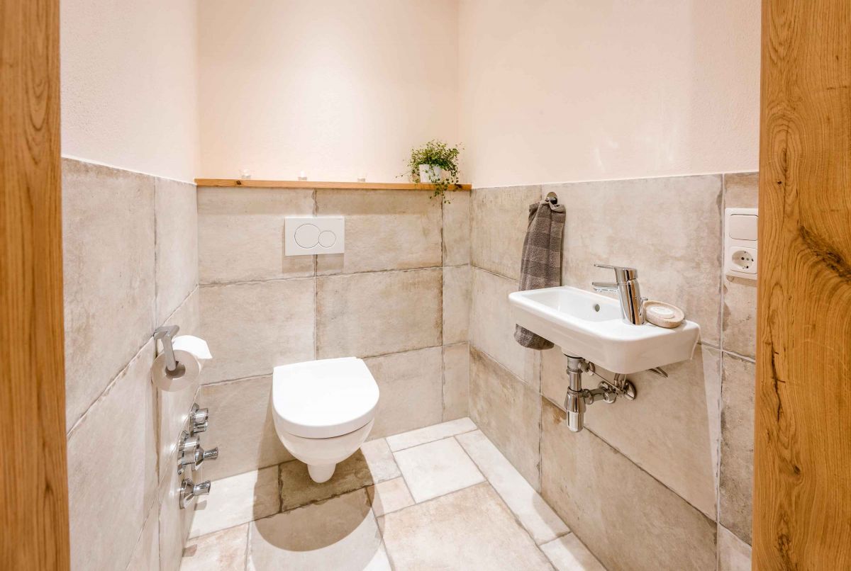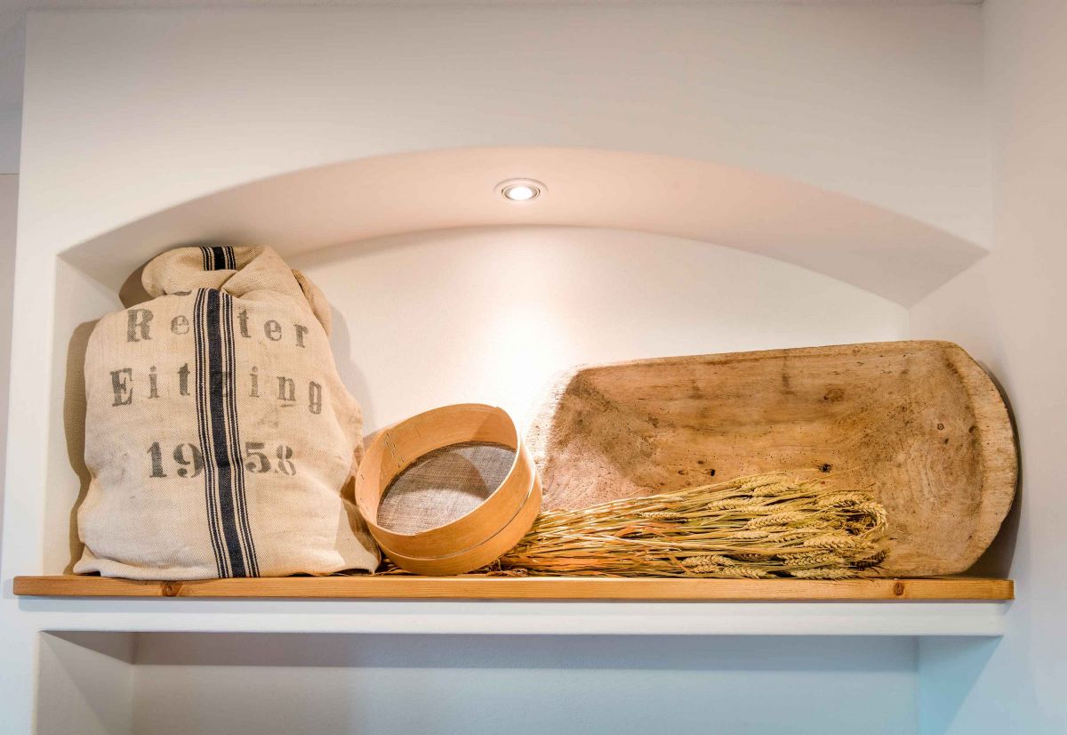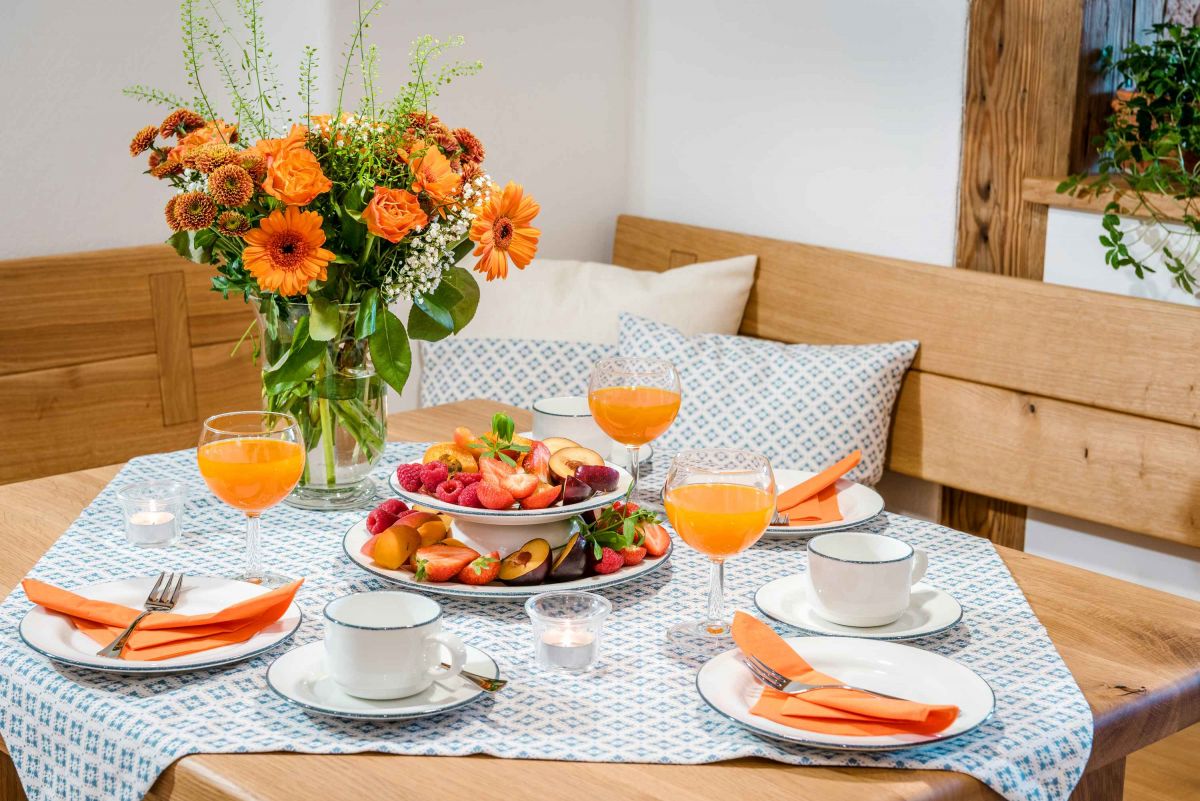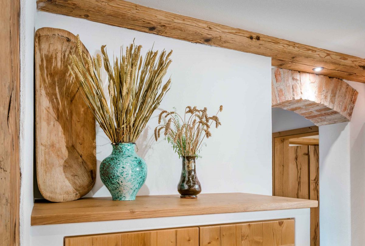 Die 5-Sterne-Luxus-Ferienwohnung "Zur Mühle" bietet mit einer Größe von etwa 61 qm reichlich Platz für bis zu 3 Personen. Die gemütlich eingerichtete Ferienwohnung befindet sich im zweiten Stock des neu erbauten Bauernhauses, ist komfortabel mit dem Lift zu erreichen, und besitzt einen Südwestbalkon. Sie verfügt über zwei getrennte Schlafzimmer: ein Elternschlafzimmer mit Doppelbett sowie ein Kinderzimmer mit Einzelbett, ein Zustellbett im Kinderzimmer ist möglich (Einzelbett wird zum Etagenbett). Die Küche wie auch die übrige Einrichtung wurde von Schreinern angefertigt. Details, Stoffe und Farben wurden von Bäuerin Evi liebevoll zum Wohlfühlen ausgewählt.