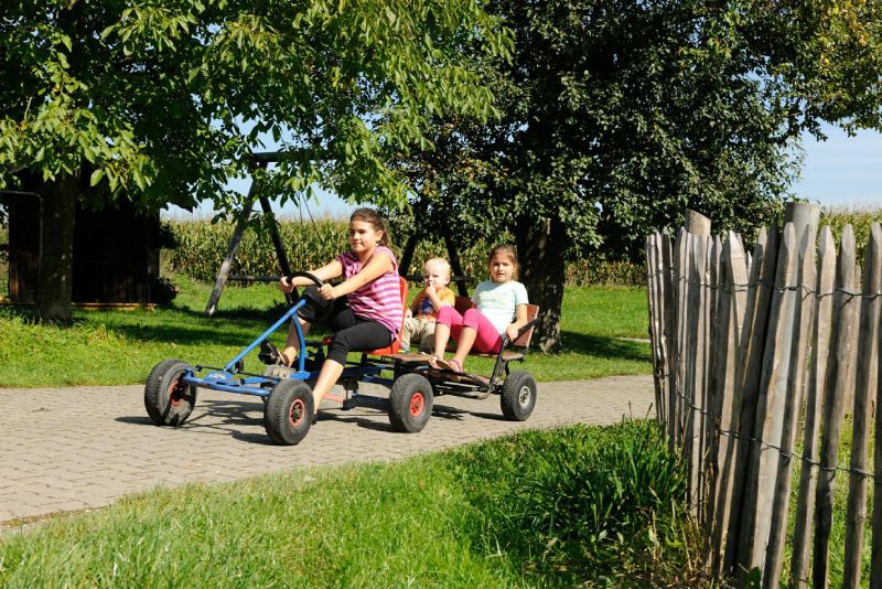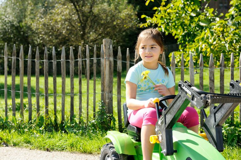 Auch für kleinere Kinder ist mit dem Sandkasten, einem Kinderspielhaus und dem Weideniglu viel Abwechslung geboten. Und mit unseren tollen Kinderfahrzeugen verschiedenster Art, den Go-Karts, Fahrrädern, Rollern, Trettraktoren, Dreirädern oder dem Bobbycar, sind eure Kinder immer in Bewegung, sie erkunden den Hof oder veranstalten lustige Wettfahrten.